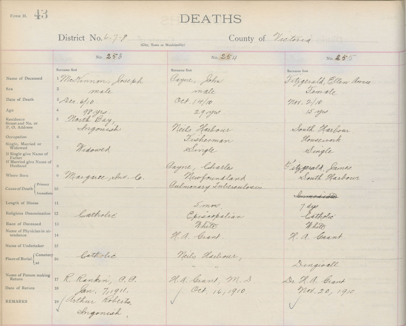 Death Registration: Year: 1910 book: 18 page: 43 number: 253