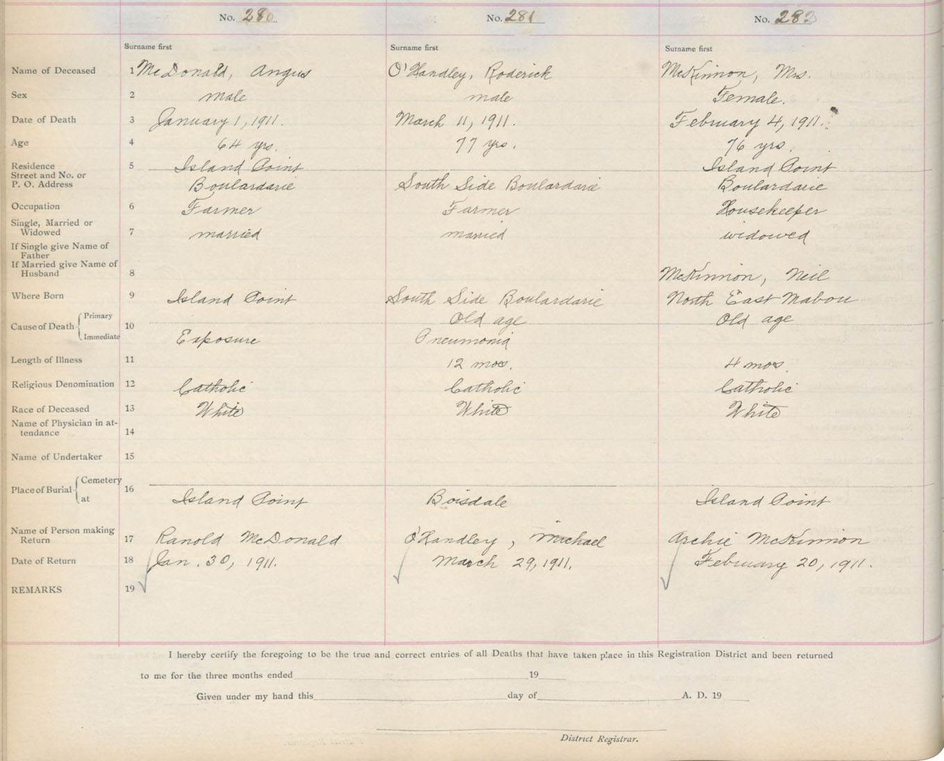 Death Registration: Year: 1911 book: 18 page: 47 number: 280