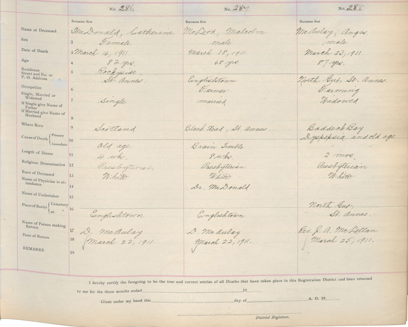 Death Registration: Year: 1911 book: 18 page: 48 number: 286