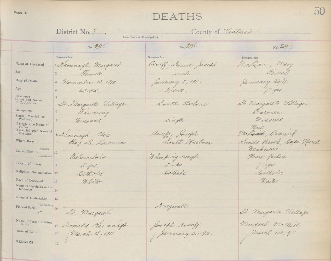 Death Registration: Year: 1911 book: 18 page: 50 number: 295