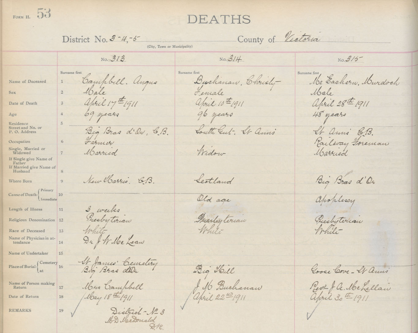 Death Registration: Year: 1911 book: 18 page: 53 number: 313