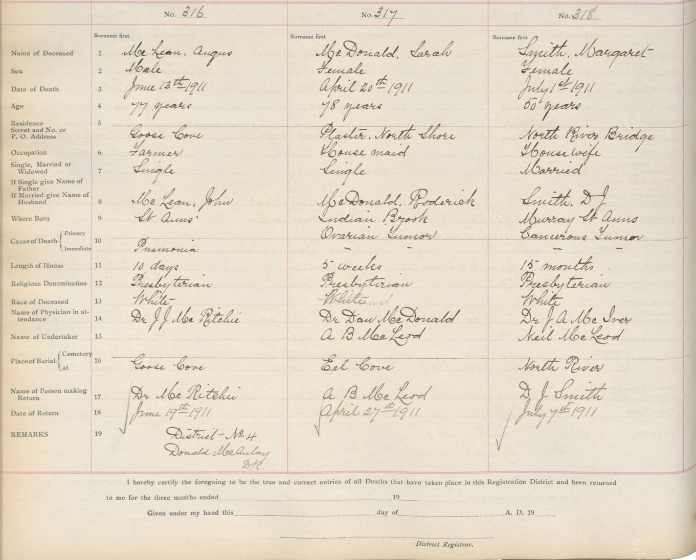 Death Registration: Year: 1911 book: 18 page: 53 number: 316