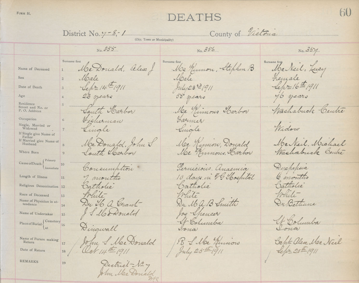 Death Registration: Year: 1911 book: 18 page: 60 number: 355