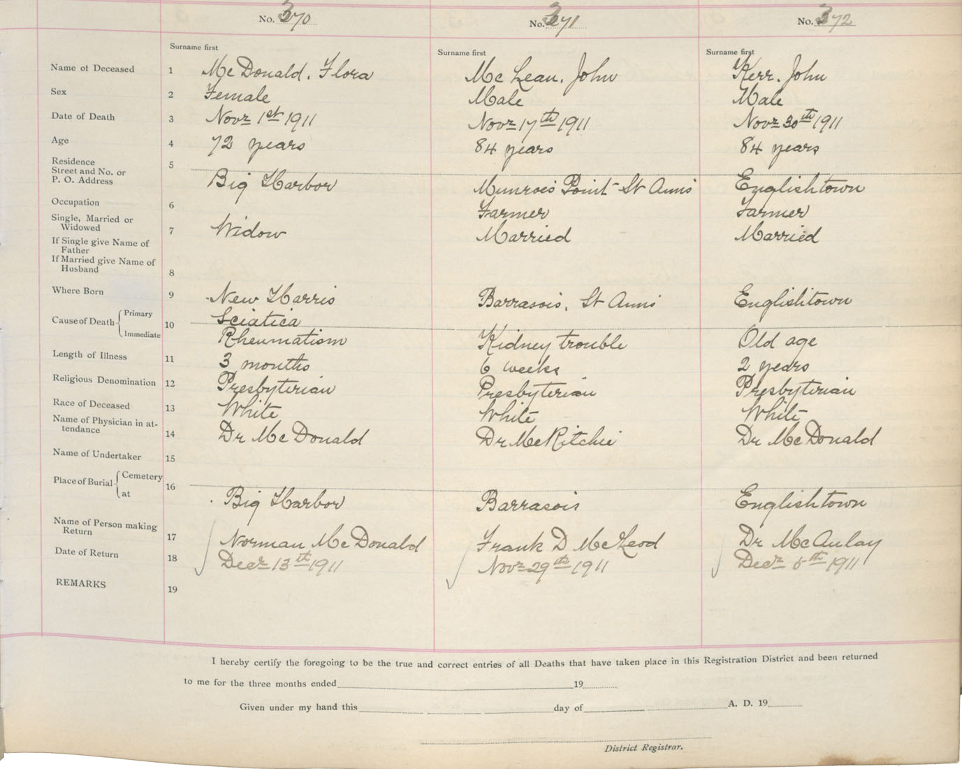 Death Registration: Year: 1911 book: 18 page: 62 number: 370