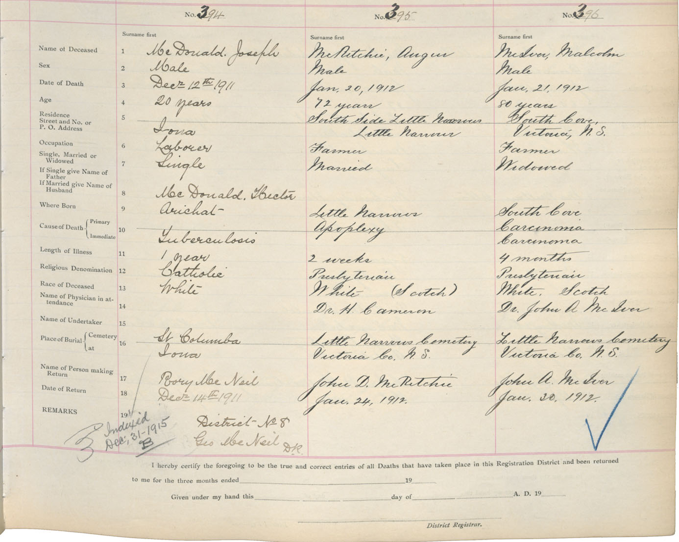 Death Registration: Year: 1911 book: 18 page: 66 number: 394