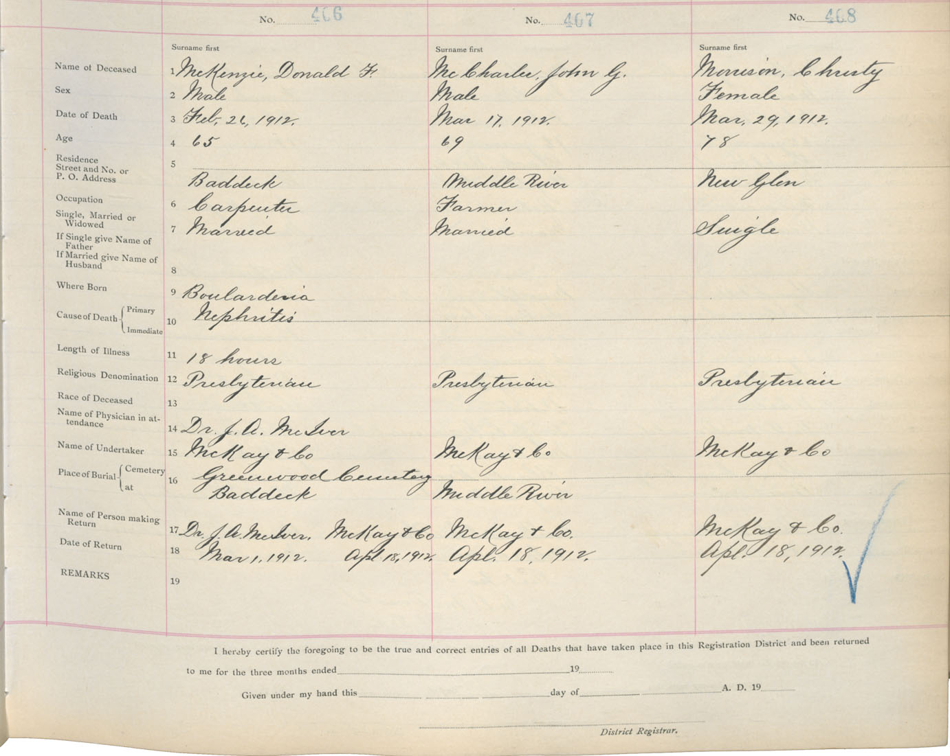 Male Death Registration: Year: 1912 book: 18 page: 68 number: 406