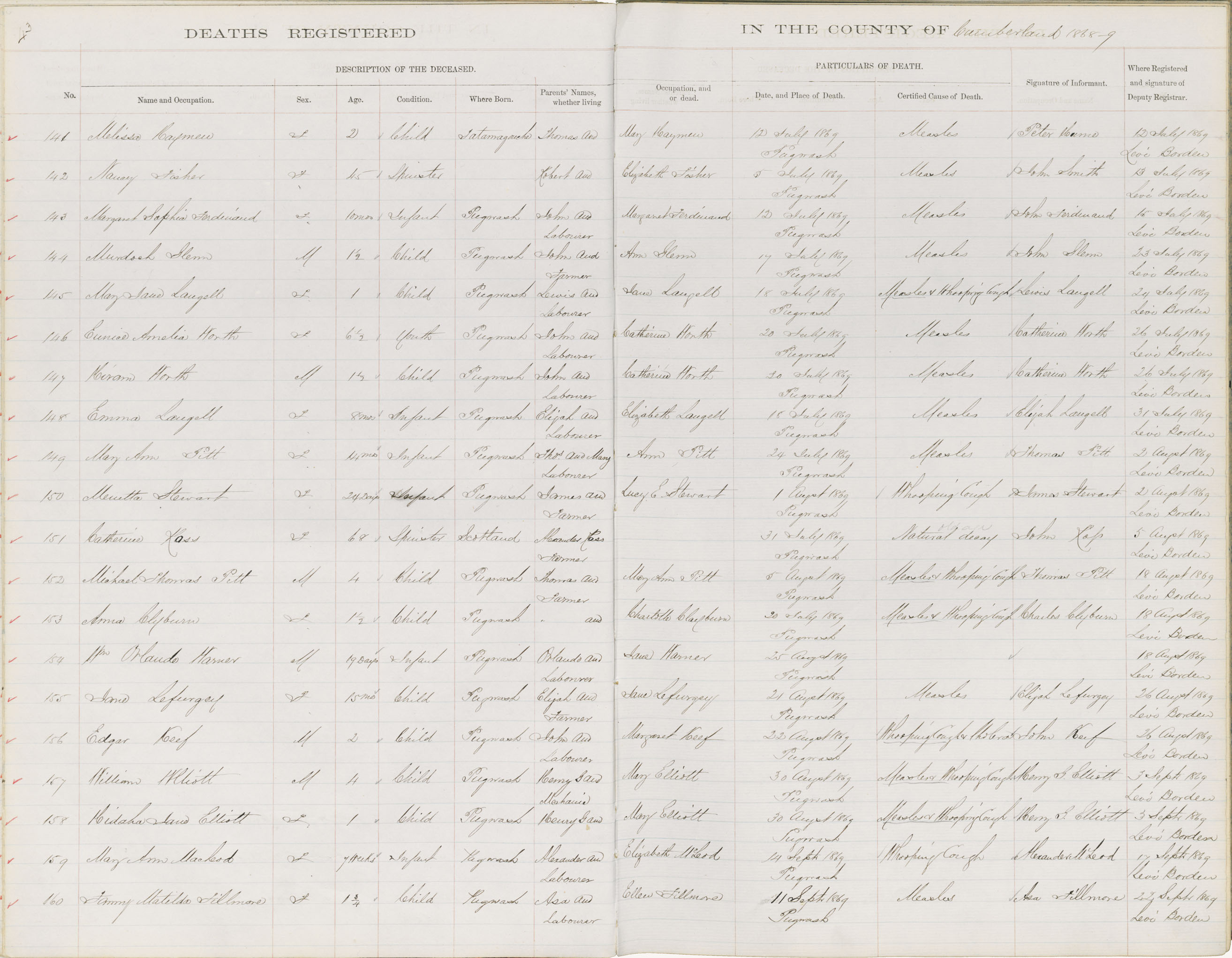 Death Registration: Year: 1869 book: 1805 page: 43 number: 141