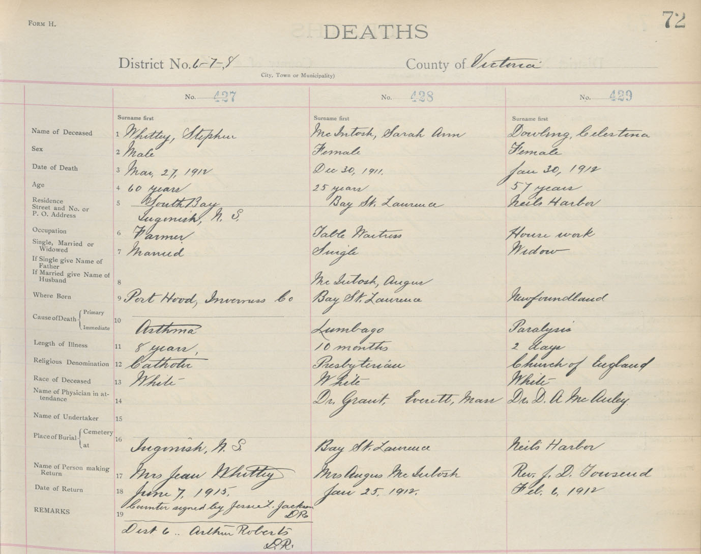 Death Registration: Year: 1912 book: 18 page: 72 number: 427