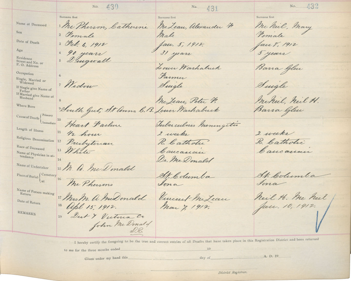 Death Registration: Year: 1912 book: 18 page: 72 number: 430