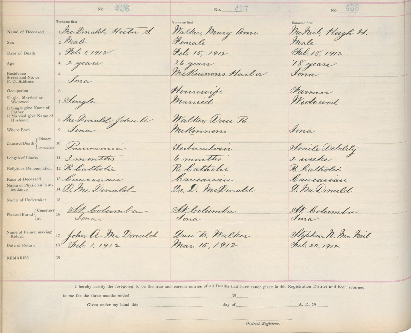 Death Registration: Year: 1912 book: 18 page: 73 number: 436