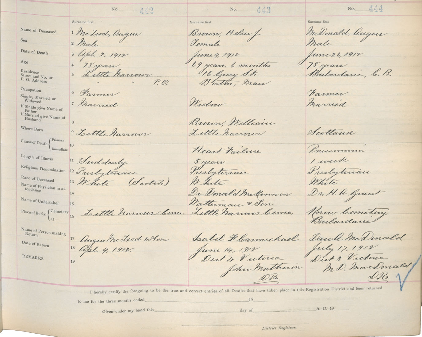 Death Registration: Year: 1912 book: 18 page: 74 number: 442