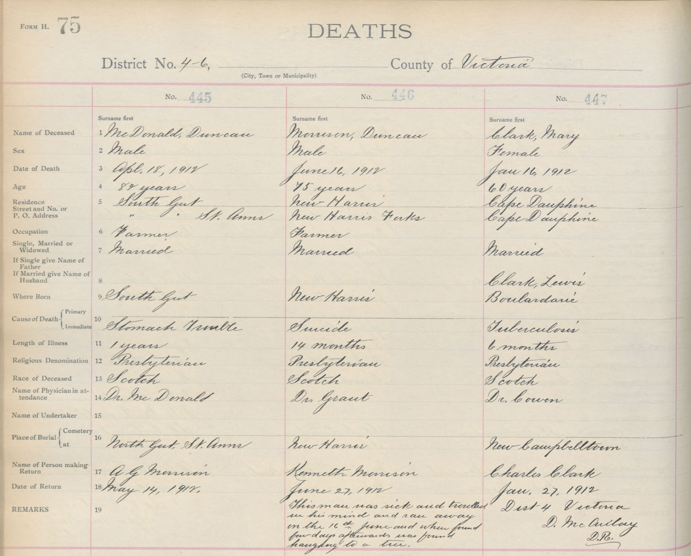 Death Registration: Year: 1912 book: 18 page: 75 number: 445