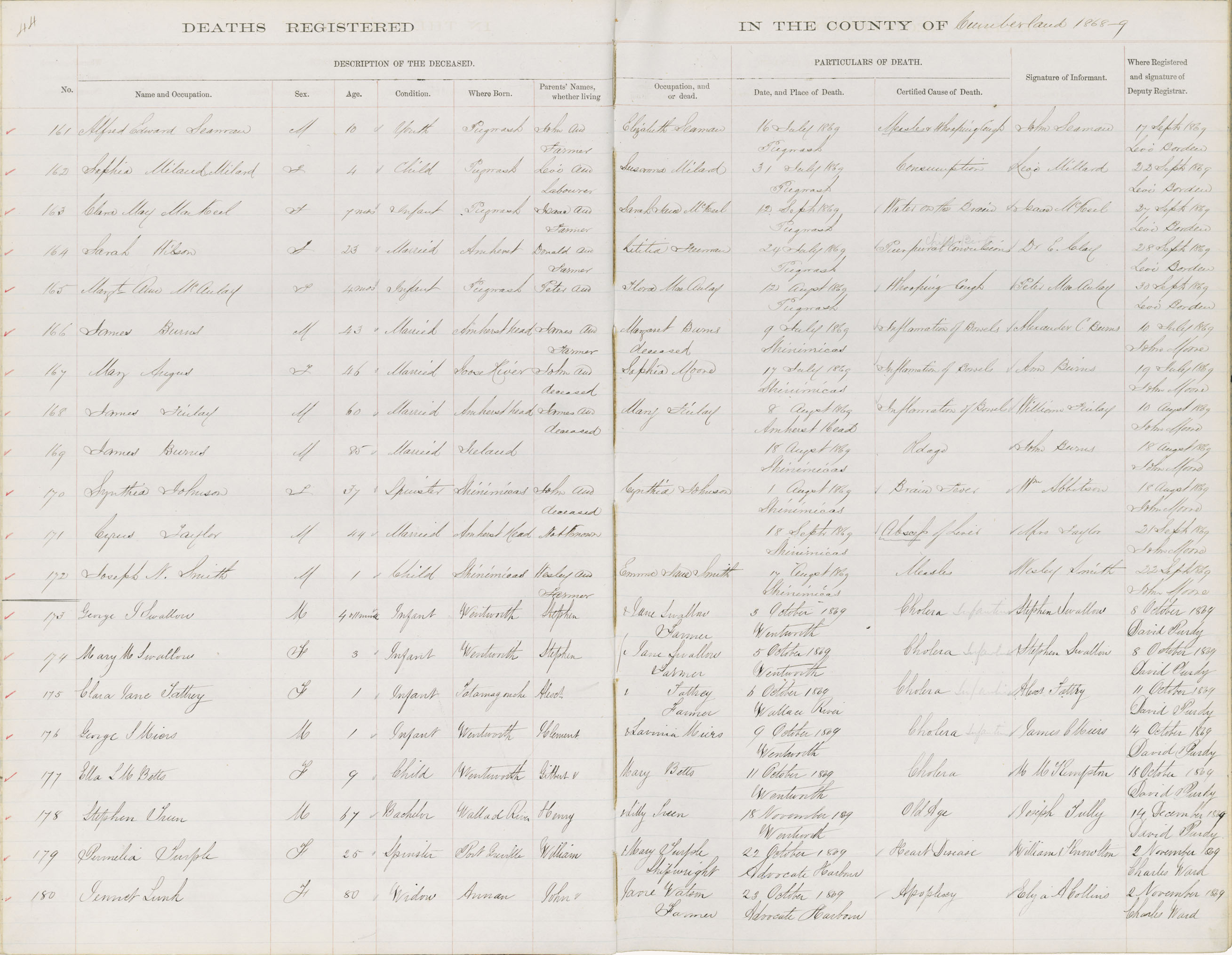 Death Registration: Year: 1869 book: 1805 page: 44 number: 161