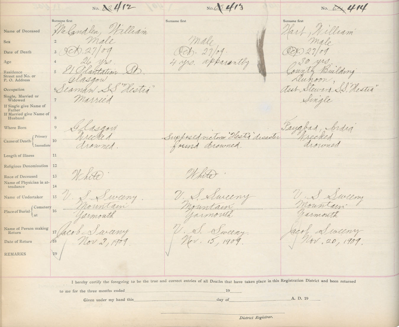 Death Registration: Year: 1909 book: 19 page: 67 number: 414