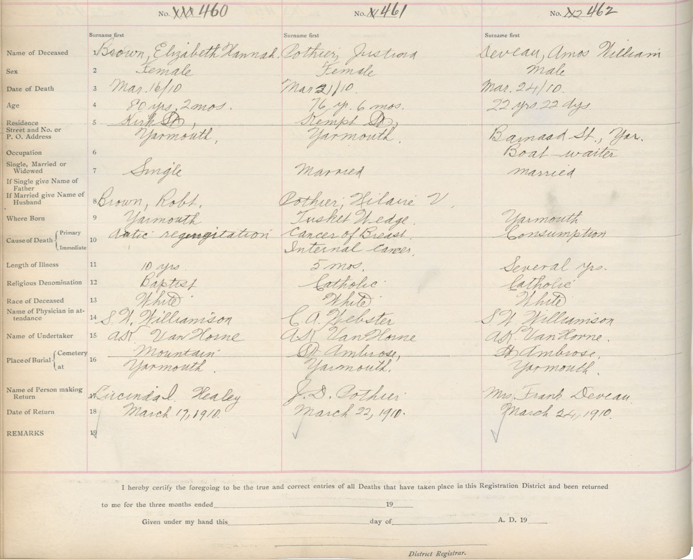 Death Registration: Year: 1910 book: 19 page: 75 number: 462