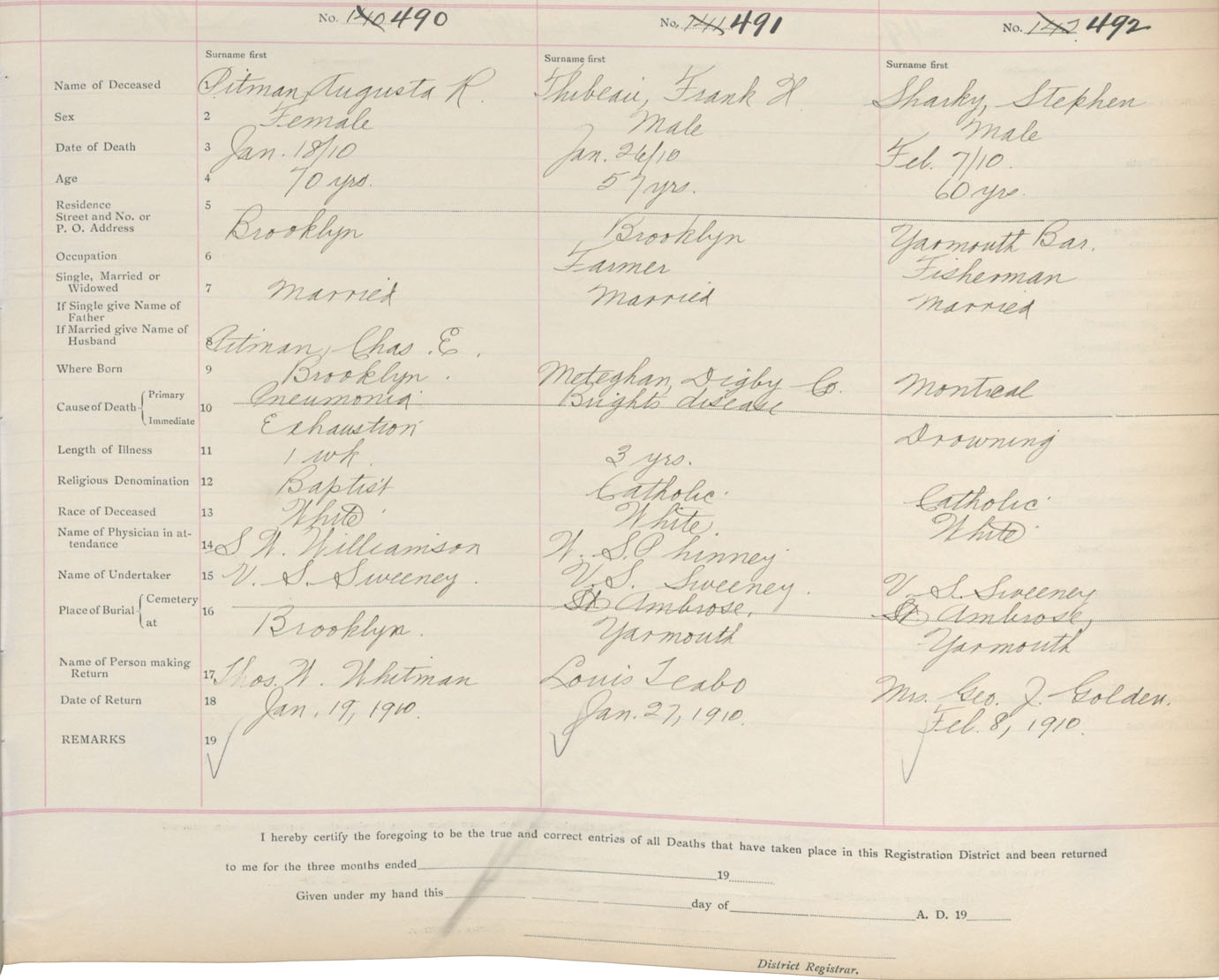Death Registration: Year: 1910 book: 19 page: 80 number: 492