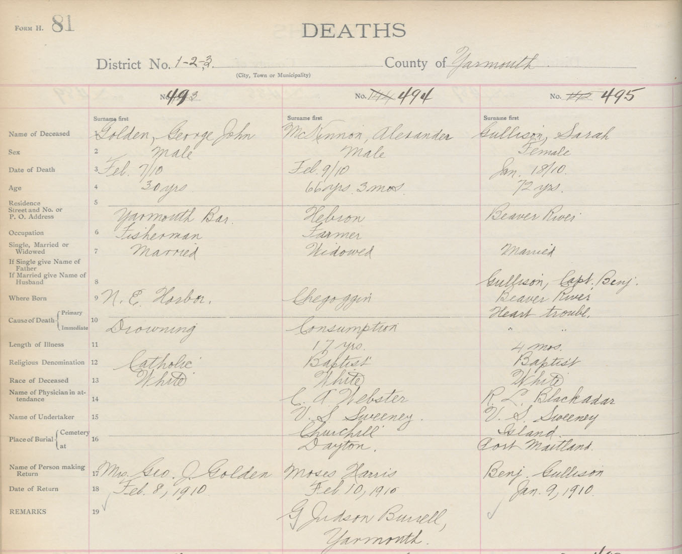 Death Registration: Year: 1910 book: 19 page: 81 number: 495