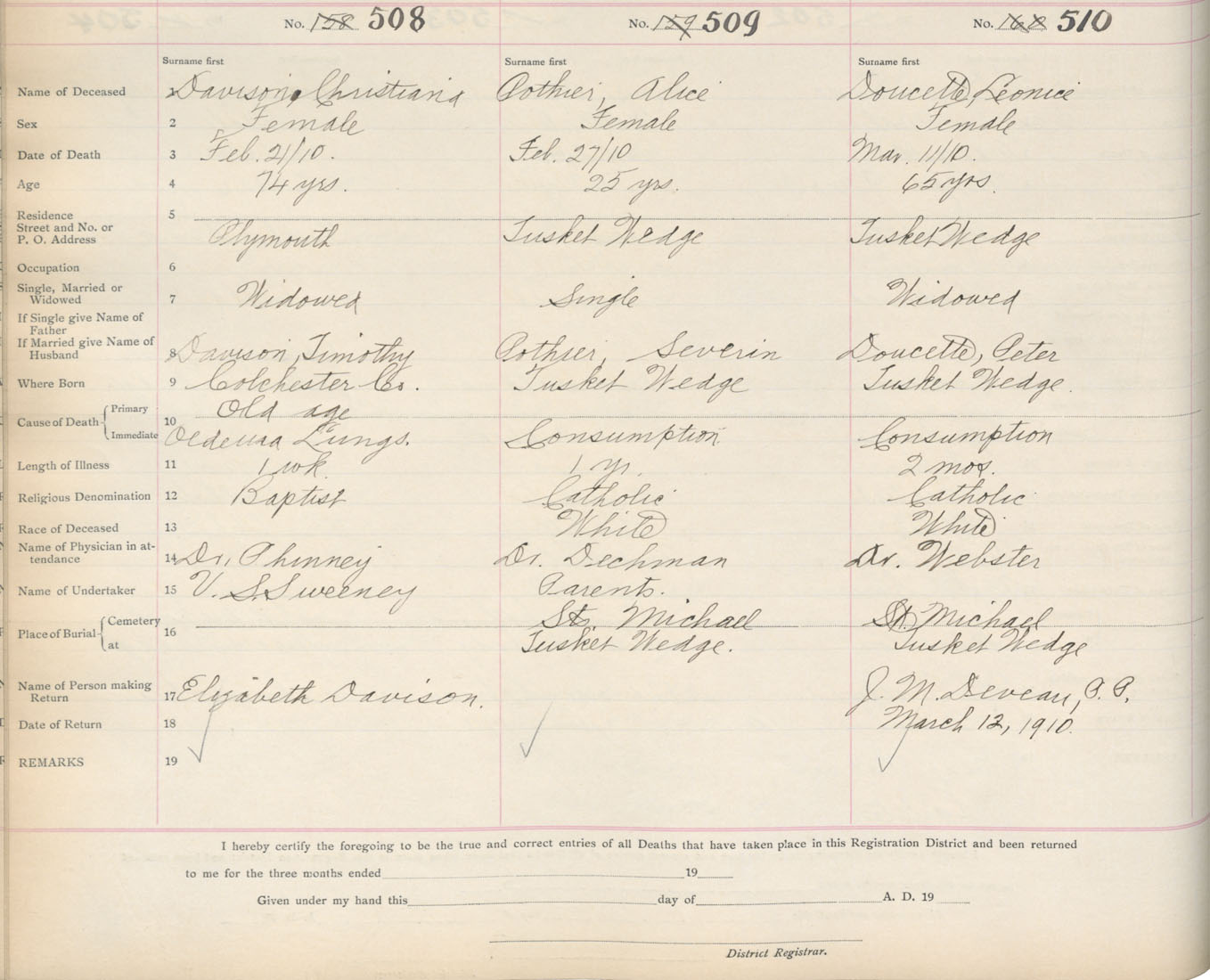 Death Registration: Year: 1910 book: 19 page: 83 number: 510