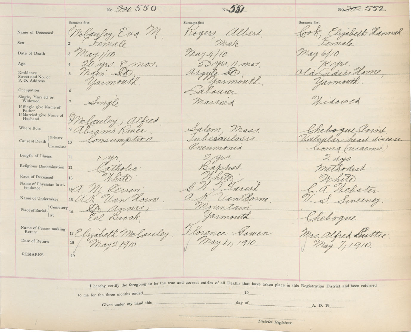 Death Registration: Year: 1910 book: 19 page: 90 number: 552