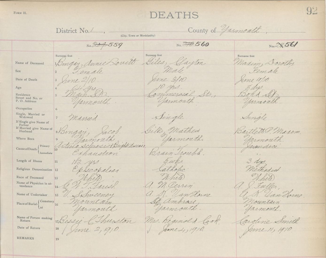 Death Registration: Year: 1910 book: 19 page: 92 number: 561