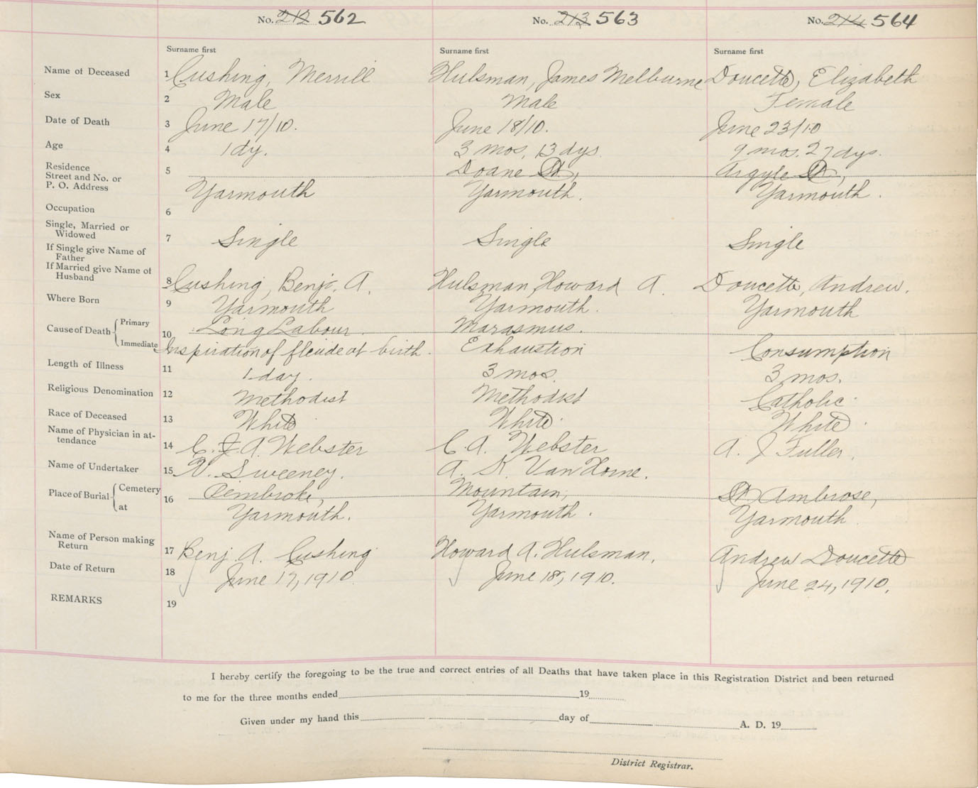Death Registration: Year: 1910 book: 19 page: 92 number: 564