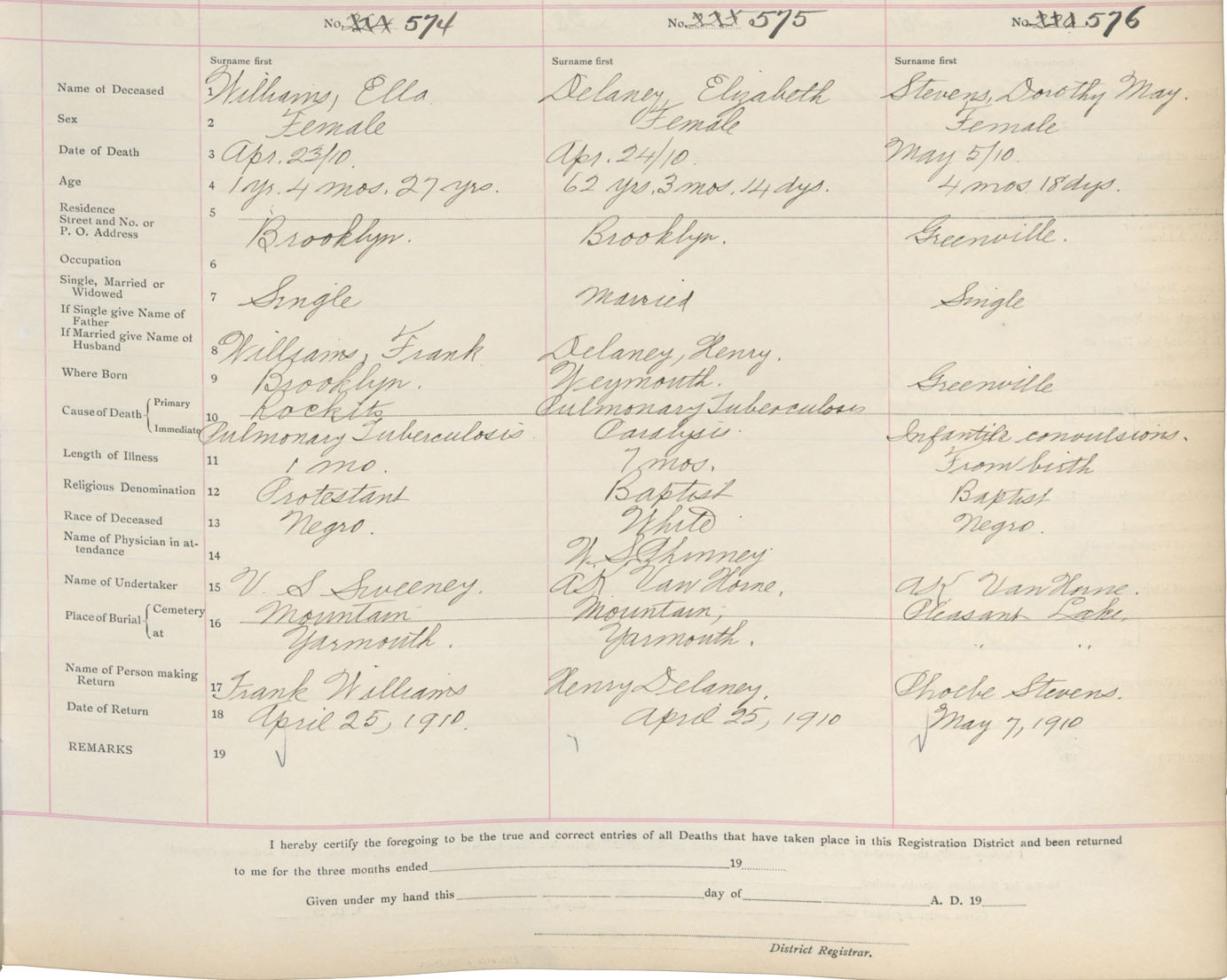 Death Registration: Year: 1910 book: 19 page: 94 number: 576