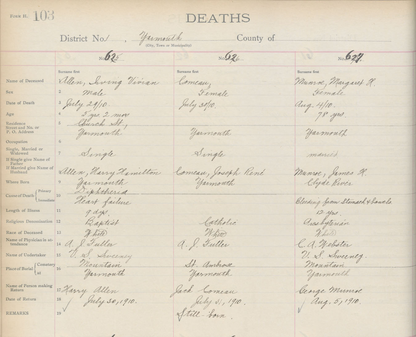 Death Registration: Year: 1910 book: 19 page: 103 number: 627