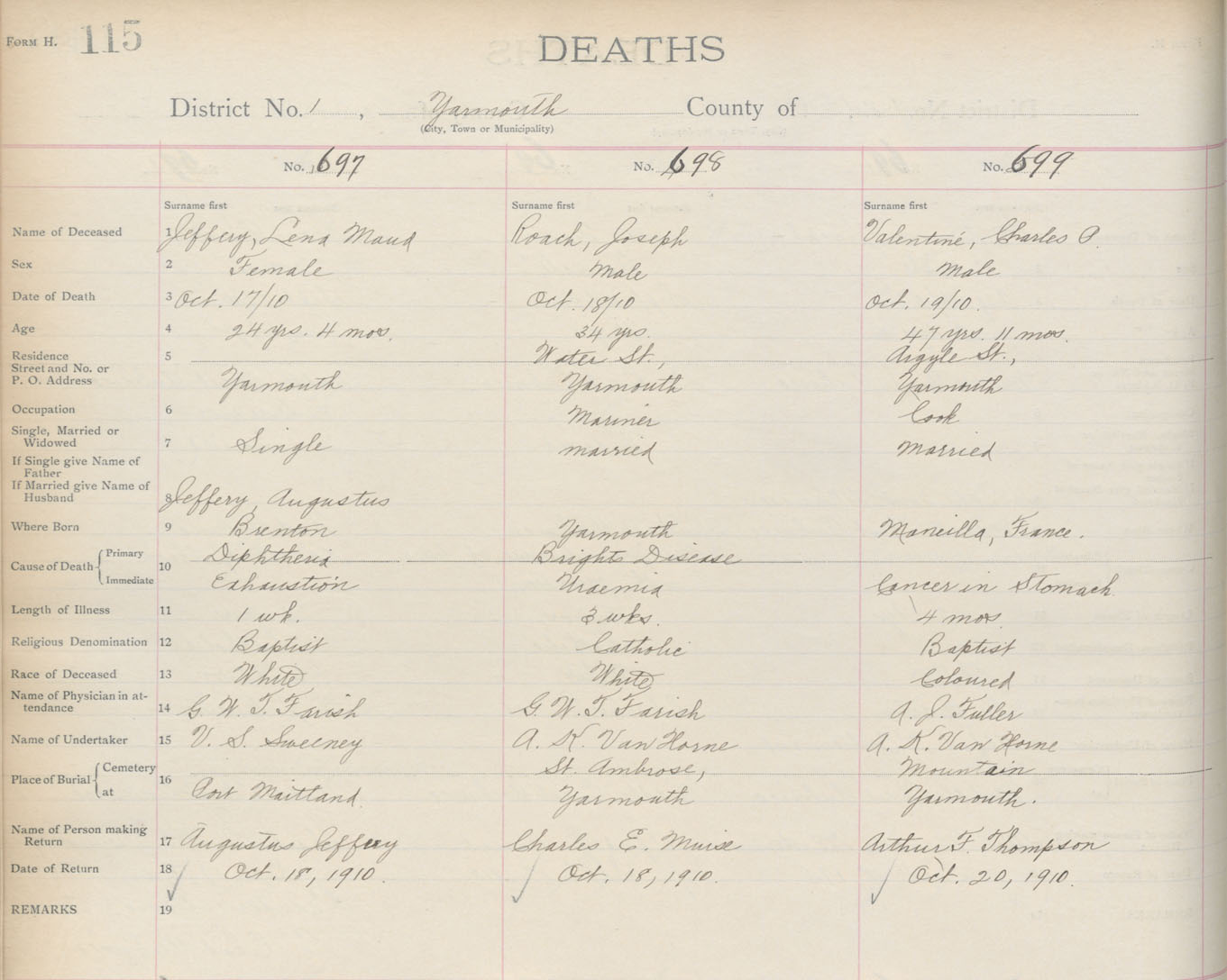Death Registration: Year: 1910 book: 19 page: 115 number: 697