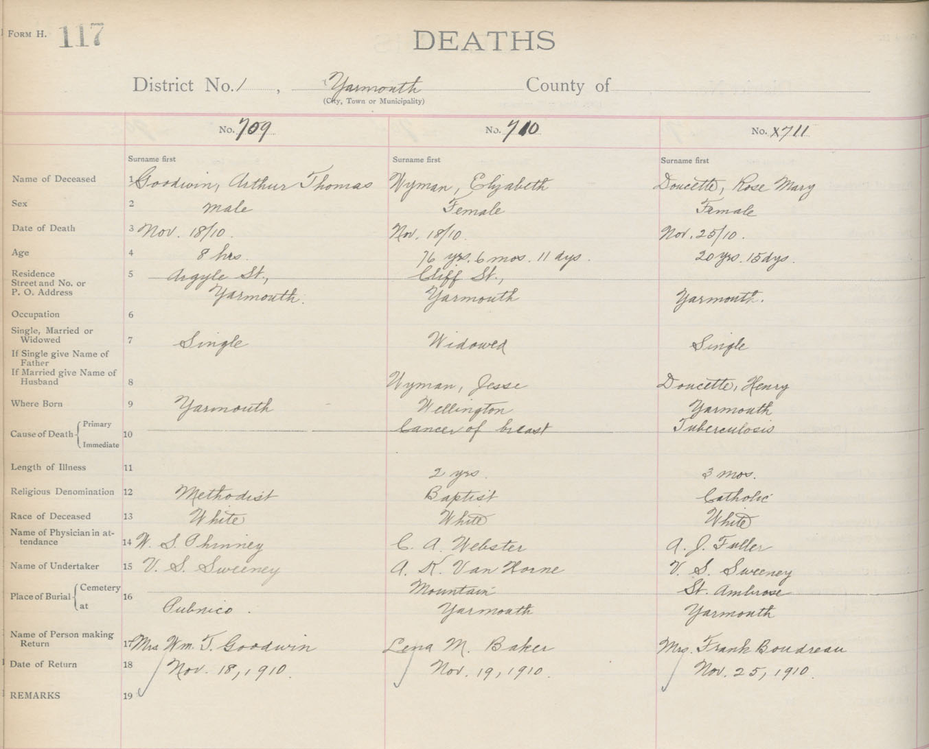 Death Registration: Year: 1910 book: 19 page: 117 number: 709