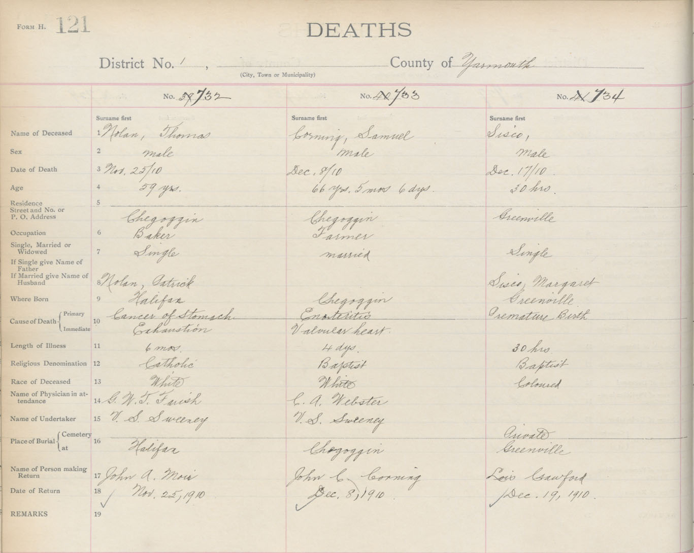 Death Registration: Year: 1910 book: 19 page: 121 number: 732