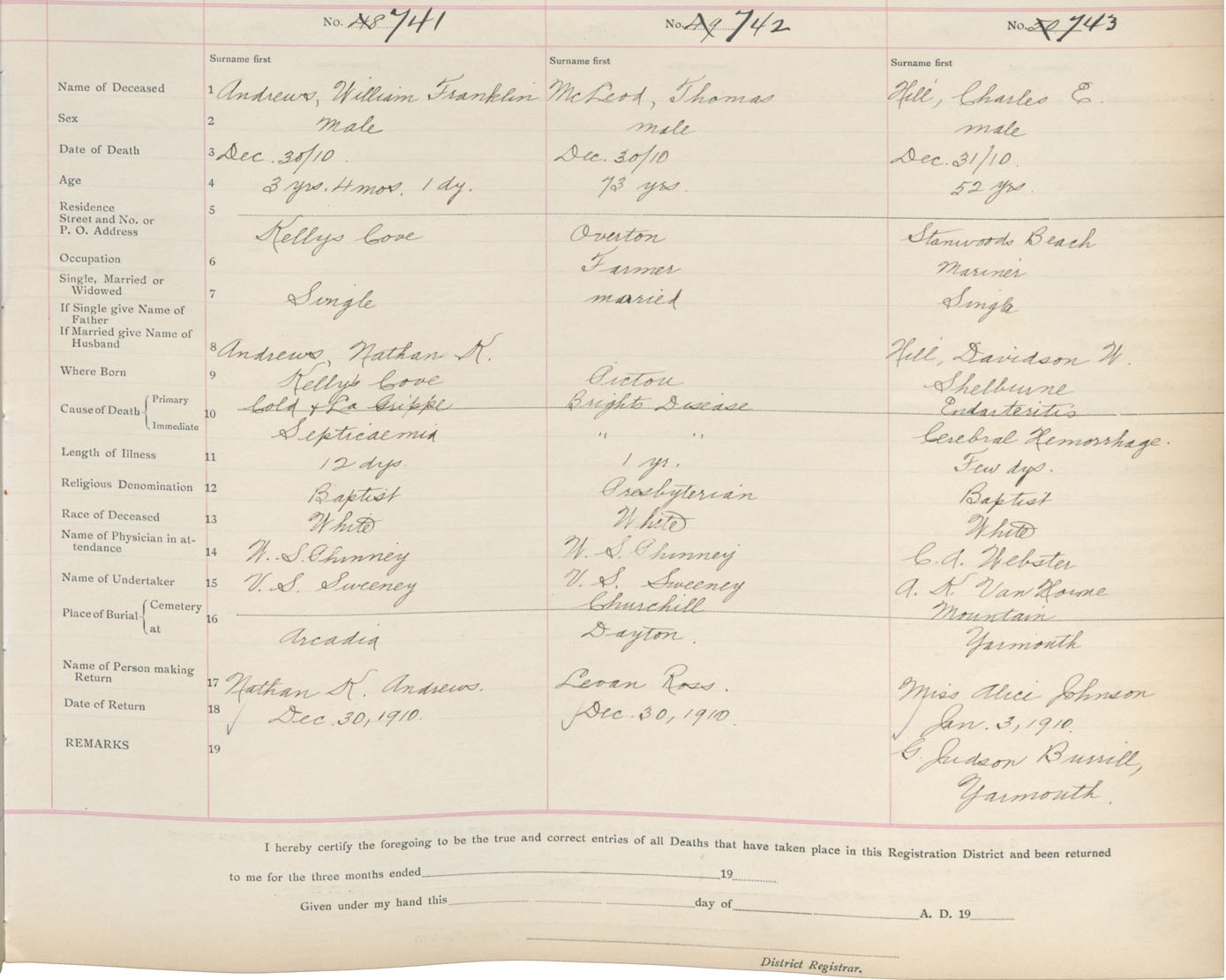 Death Registration: Year: 1910 book: 19 page: 122 number: 741