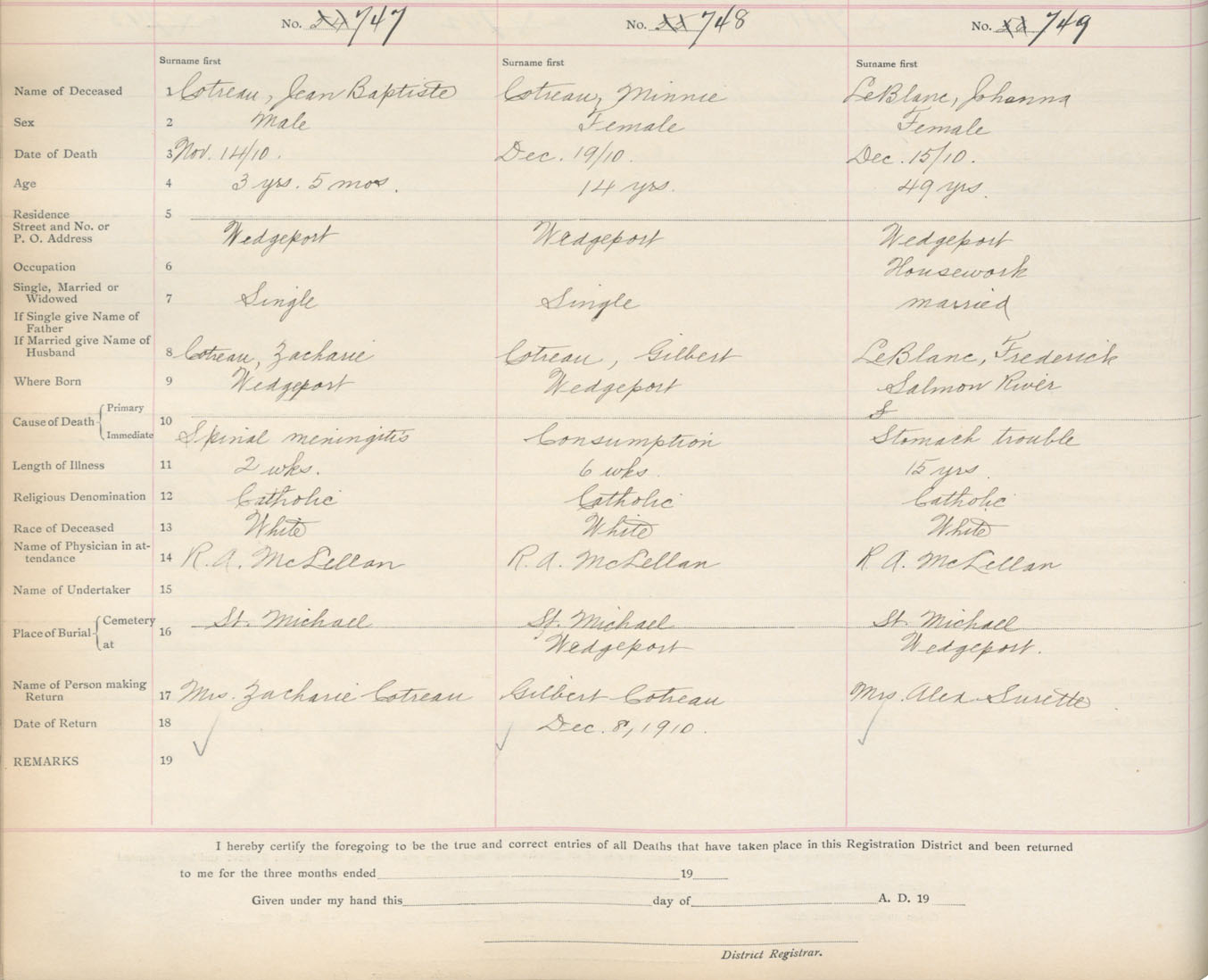 Death Registration: Year: 1910 book: 19 page: 123 number: 747