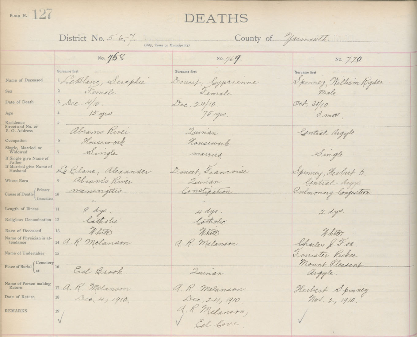 Death Registration: Year: 1910 book: 19 page: 127 number: 768