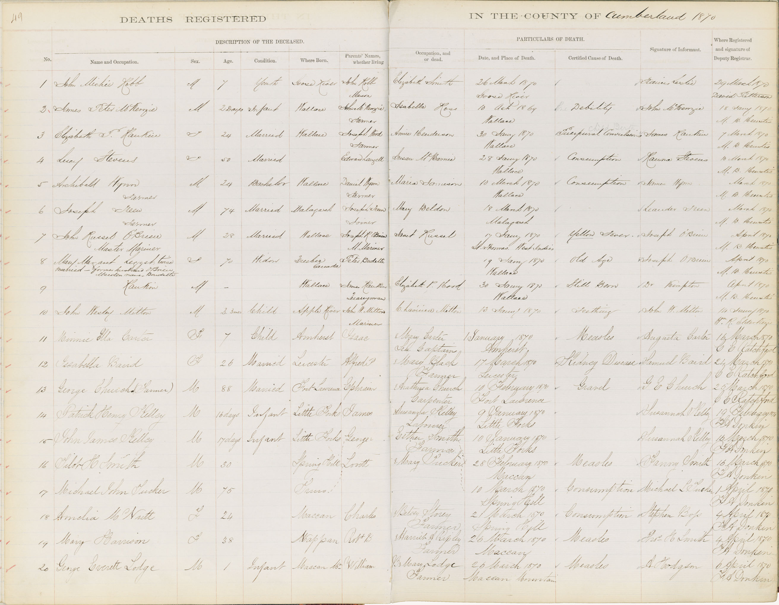 Death Registration: Year: 1870 book: 1805 page: 49 number: 1