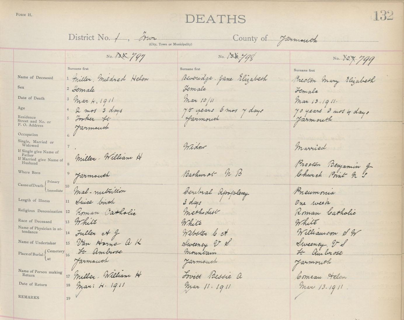 Death Registration: Year: 1911 book: 19 page: 132 number: 797