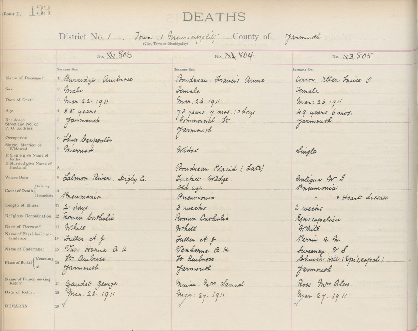 Death Registration: Year: 1911 book: 19 page: 133 number: 803