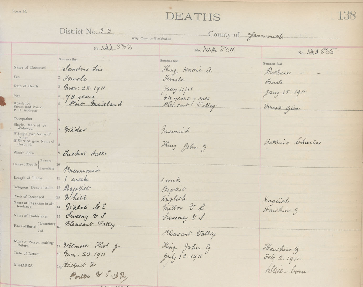 Death Registration: Year: 1911 book: 19 page: 138 number: 833