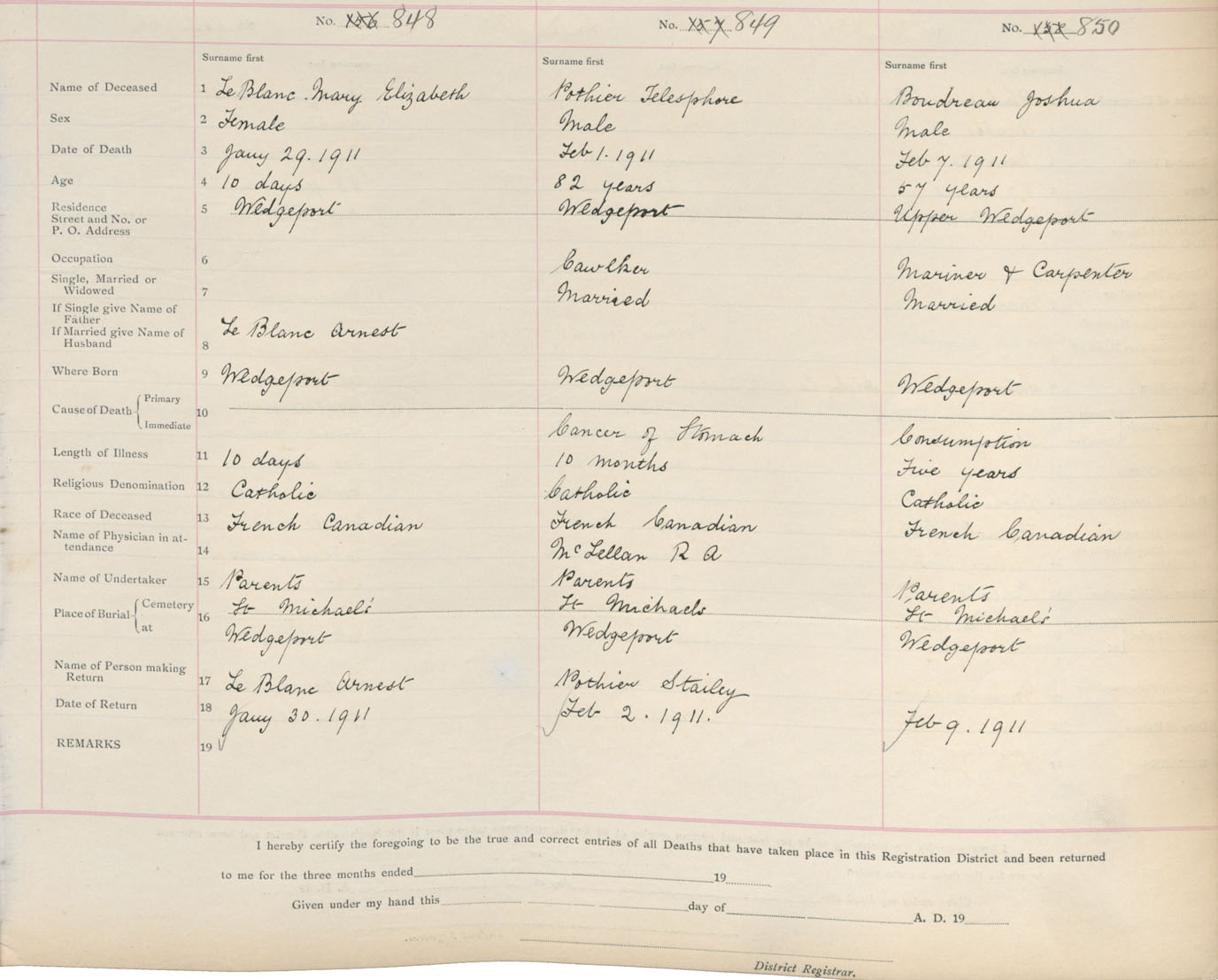 Death Registration: Year: 1911 book: 19 page: 140 number: 848