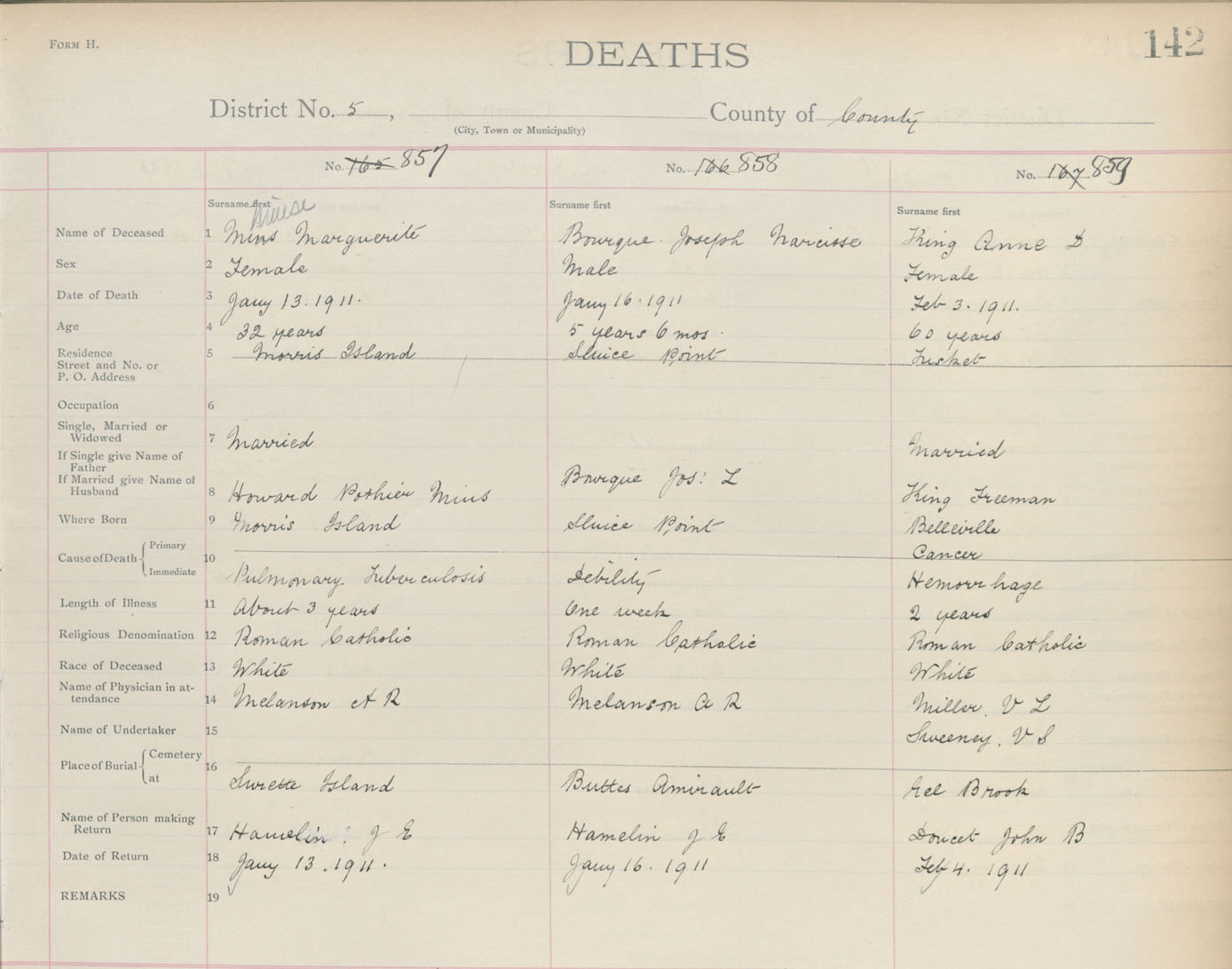 Death Registration: Year: 1911 book: 19 page: 142 number: 857
