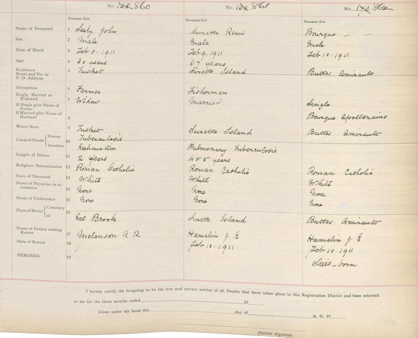 Death Registration: Year: 1911 book: 19 page: 142 number: 860