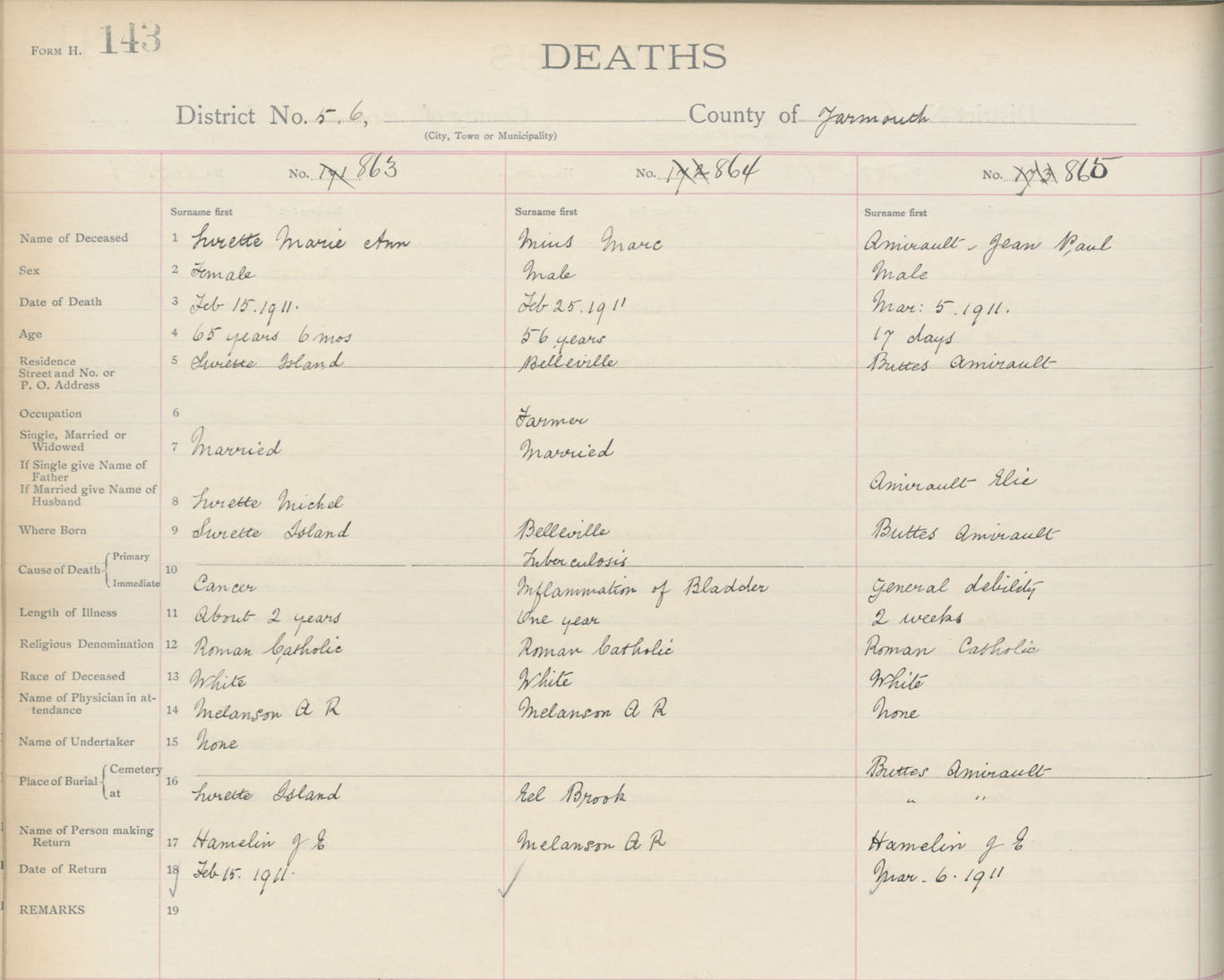 Death Registration: Year: 1911 book: 19 page: 143 number: 863