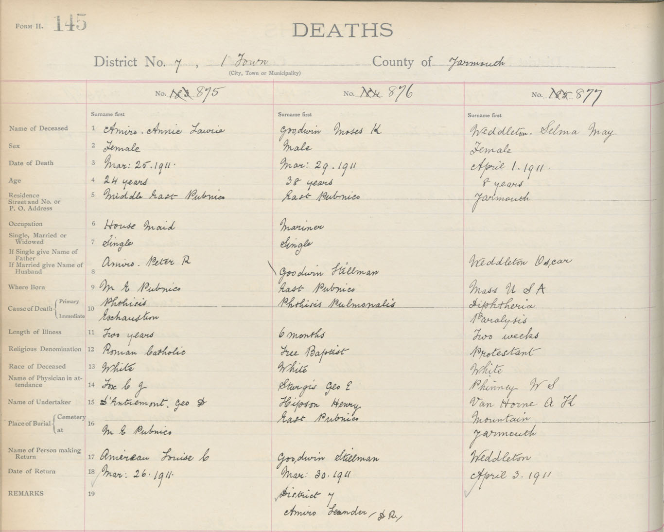 Death Registration: Year: 1911 book: 19 page: 145 number: 875