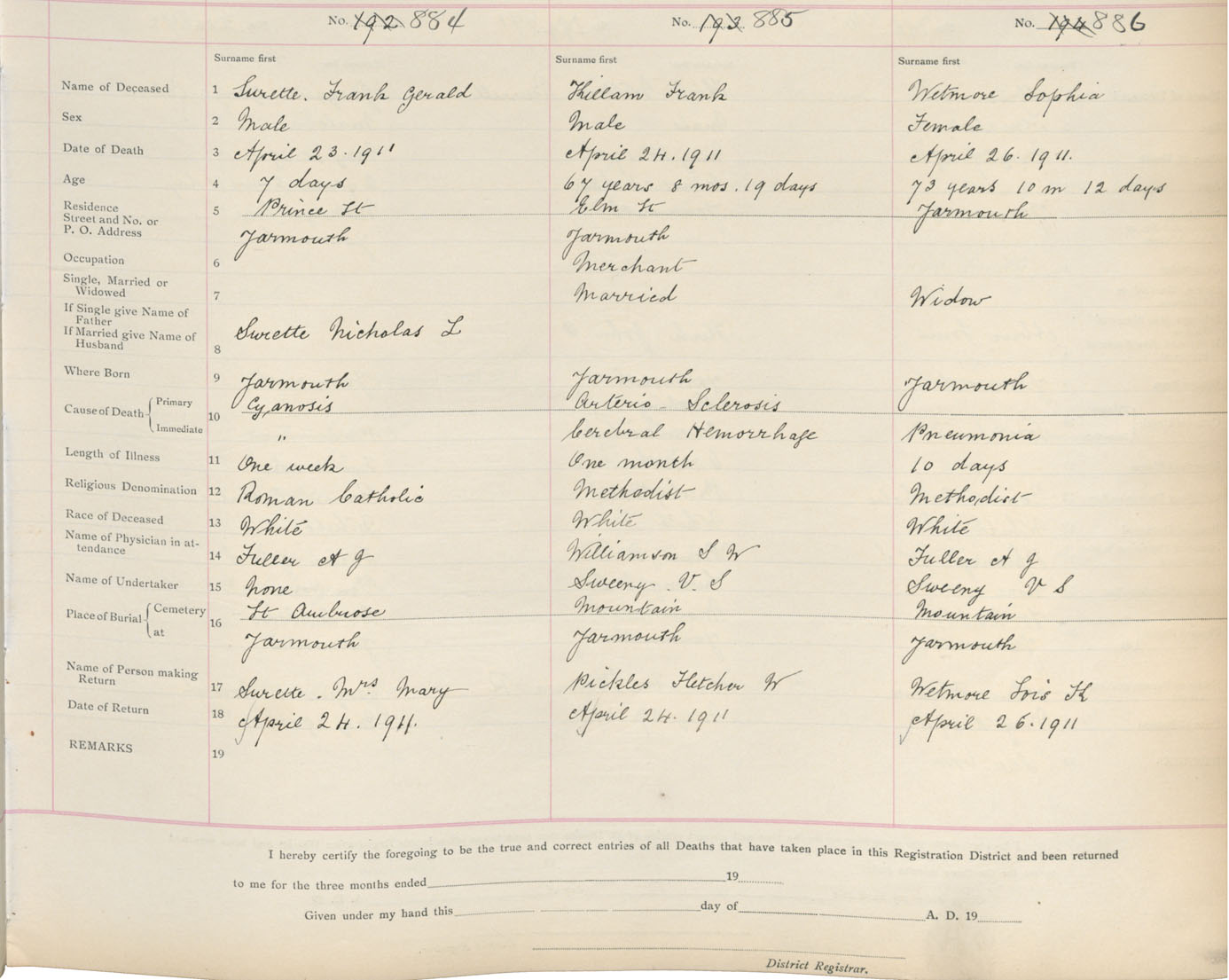 Death Registration: Year: 1911 book: 19 page: 146 number: 884