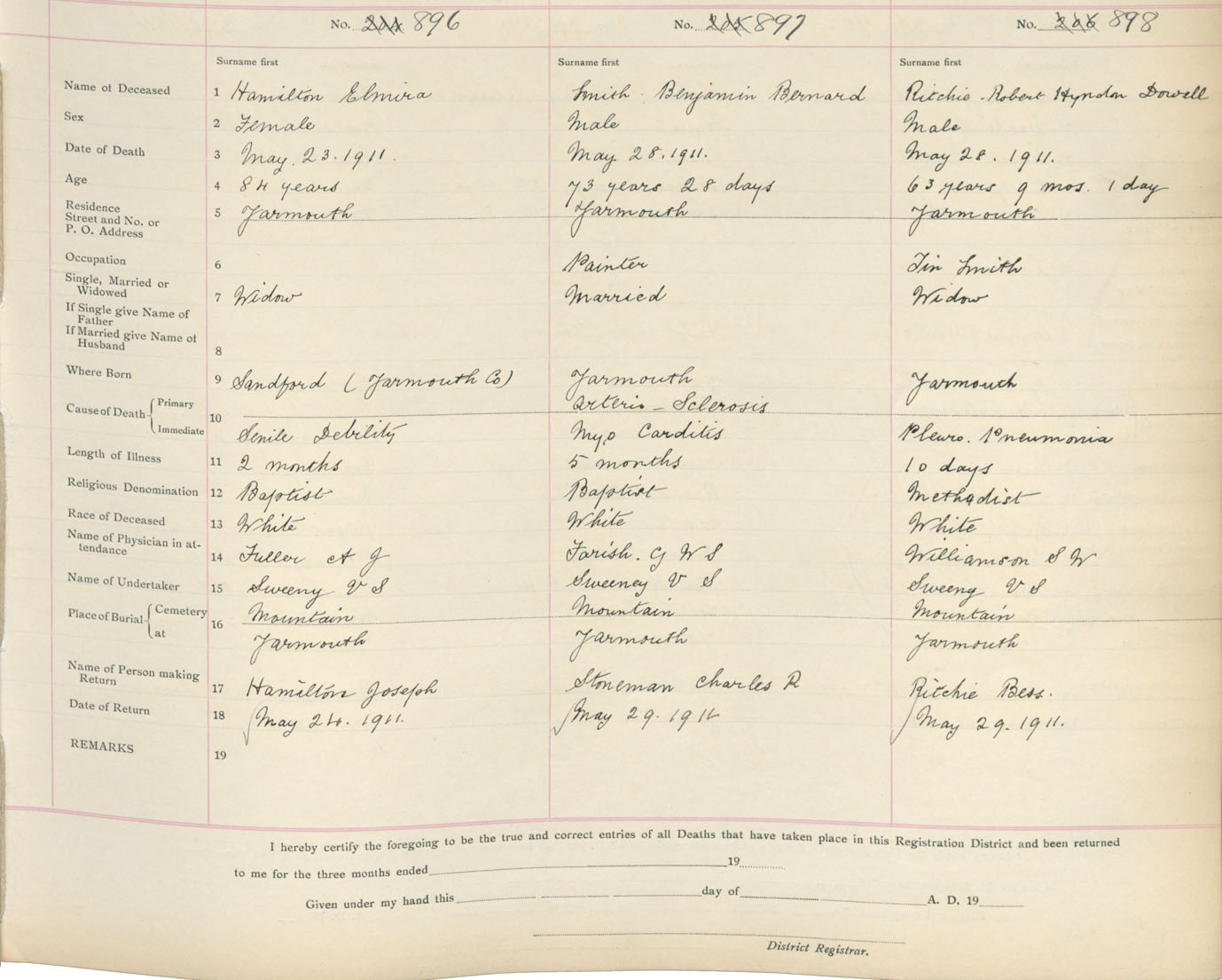 Death Registration: Year: 1911 book: 19 page: 148 number: 896