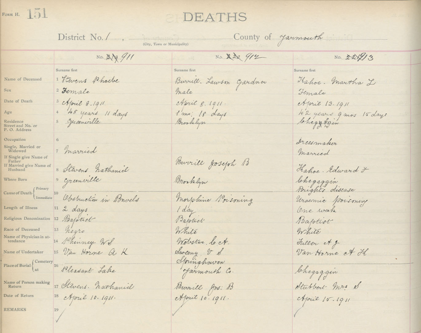 Death Registration: Year: 1911 book: 19 page: 151 number: 911