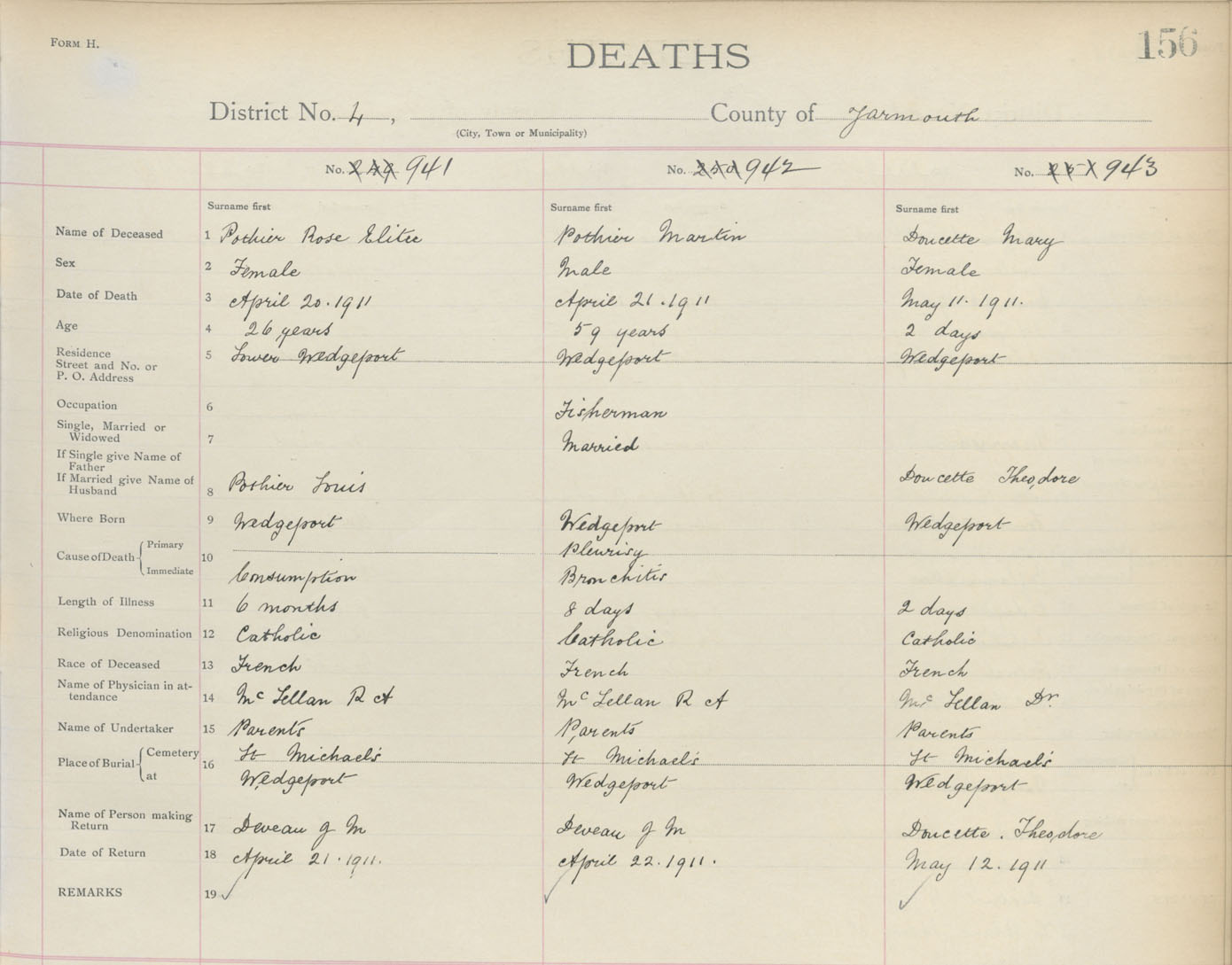 Death Registration: Year: 1911 book: 19 page: 156 number: 941