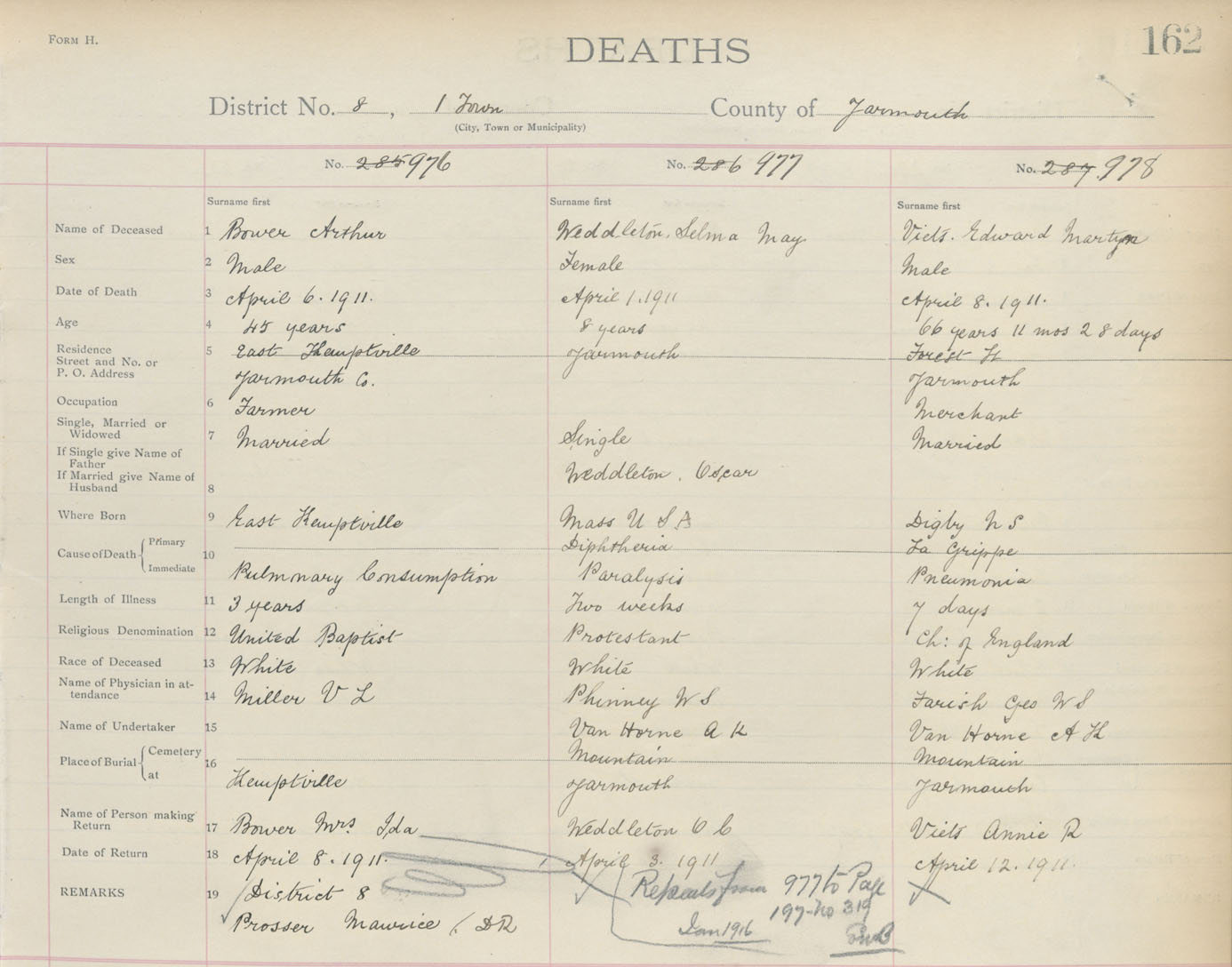 Death Registration: Year: 1911 book: 19 page: 162 number: 976