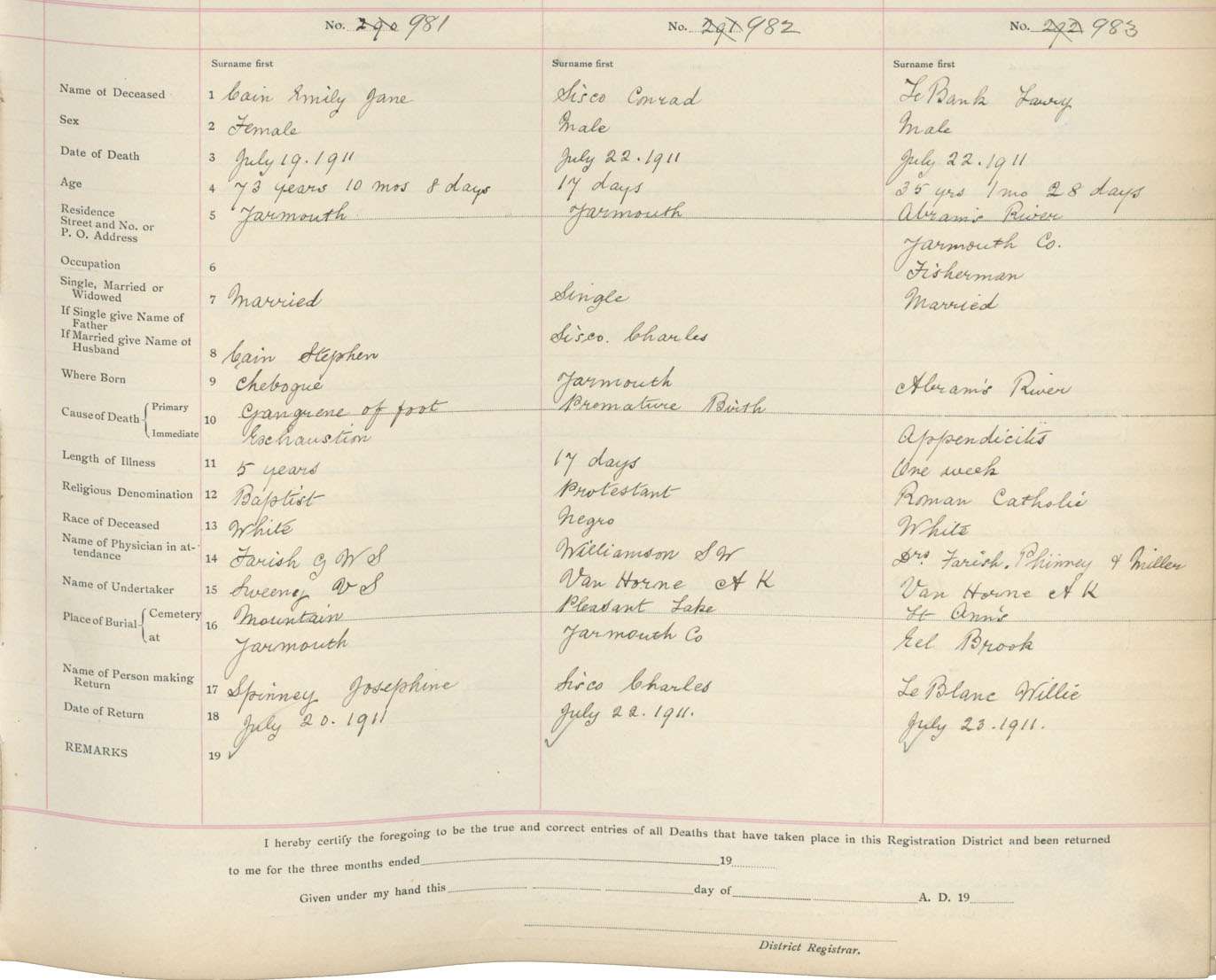 Death Registration: Year: 1911 book: 19 page: 168 number: 981
