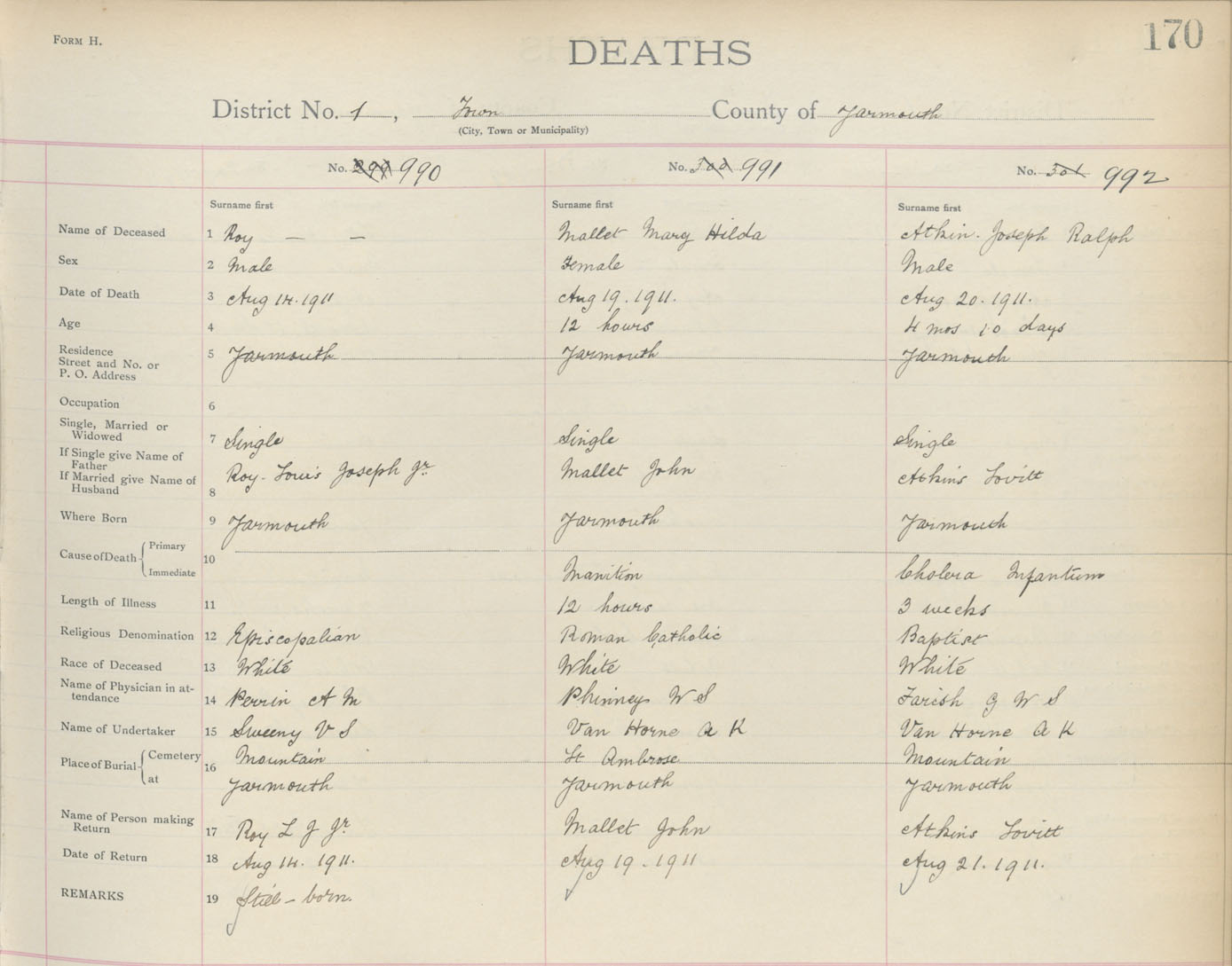 Death Registration: Year: 1911 book: 19 page: 170 number: 990
