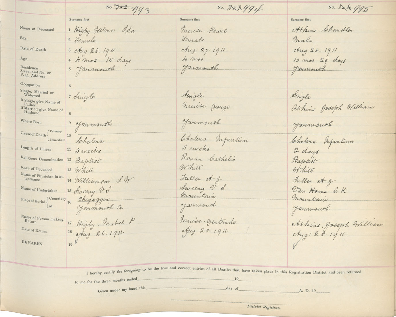 Death Registration: Year: 1911 book: 19 page: 170 number: 993